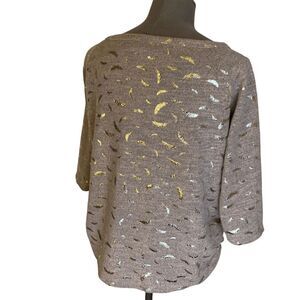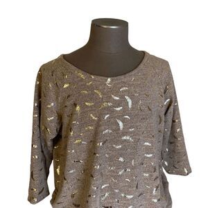 SjS Women's size 2X heather peach gray 3/4 sleeve Metallic gold leaf Sweater