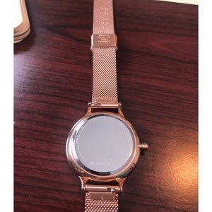 It is finished with a 14mm rose gold-mesh strap.