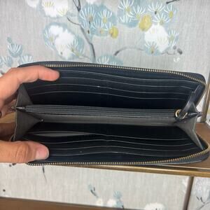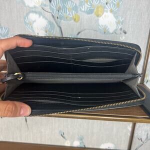 - Interior includes: 12 credit card slots, 2 open compartments, 2 bill compartments, and a zipper compartment