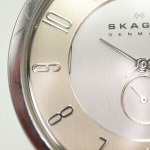 Skagen Men Two Tone Slim Swiss Parts 38mm Watch Brown Lizard Leather New Battery