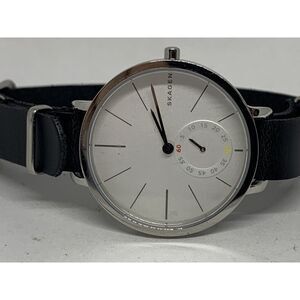Skagen SKW2358 Hagen Women's Black Leather Analog White Dial Quartz Watch HK770