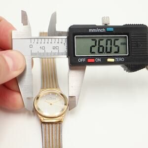 Skagen Womens Two Tone Diamond Slim 26mm Watch Steel Mesh Strap w New Battery