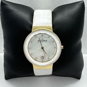 Skagen SKW2033 Women's White Leather Mother of Pearl Dial Quartz Watch JNA550