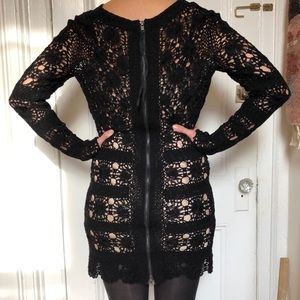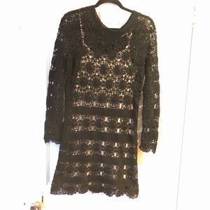 Skaist Taylor Black Knit Mini Dress over Silk Slip
