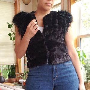 Super cute bolero fur vest with snap closures and fun pink lining. This is from a Brand Collaboration for Target. I think I only wore it twice because it sold so quickly I bought an XS and I'm really a Small so it's tight in the arm holes for me.
