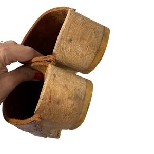 Skandals vintage brown leather wooden Swedish clogs size 37