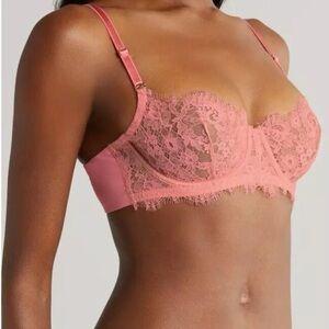 Skarlett Blue Entice bra Coral Glow underwire sz 32D sheer balconette lace