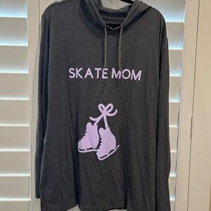 Super cute grey skate mom figure skating hoodie sweatshirt in light weight material, size women's XL.