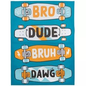 Add a playful touch to your bathroom with this skateboard-themed bath towel. Featuring vibrant teal and orange colors, it's perfect for skaters and style enthusiasts alike.