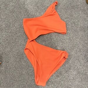 Stylish one-shoulder swimsuit. Vibrant orange color. Perfect for summer.