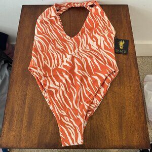 Skatie Orange White Zebra Print One Piece Swimsuit