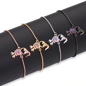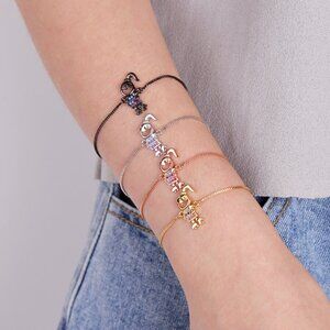 Skating Girl Hobby Yellow Gold Thin Cubic Zirconia Adjustable Bracelet