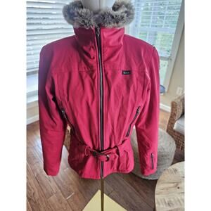 Skea Paris Vail Belted Ski Snow Jacket Women's Size 6 Made in USA Red Faux Fur