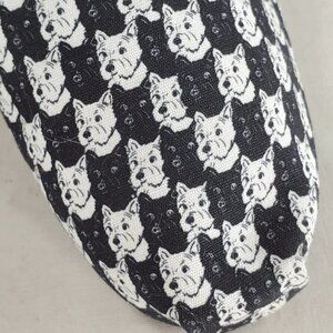 Skecher Shoes Wmn Sz 5 Bobs Schnauzer Black White AOP Slip On Loafer Memory Foam