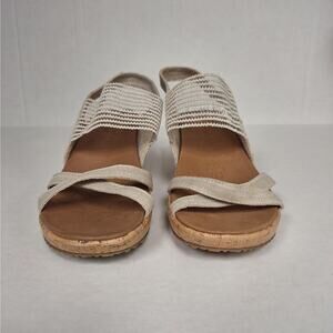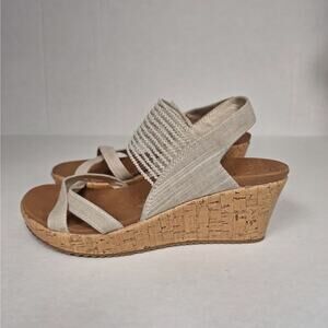 Skechers 7 Beverlee High Tea Strappy Casual Cork Wedges Sandals Natural Tan