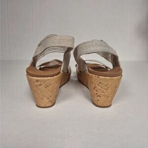 Casual stylish cork wedge sandals! Perfect for warm summer spring weather, tropical or beach vacations, or everyday use! Natural tan colorway. Strappy elastic style. Enjoy!