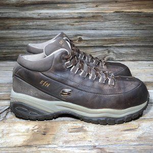 Skechers 76414 Work Hiking Brown Leather Boots 7.5