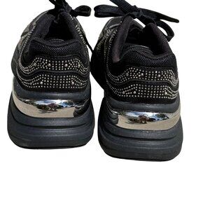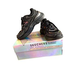 Skechers Air Cooled Memory Foam Black Tennis Athletic Shoes Rhinestones W6 NIB