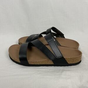 Skechers Arch Comfort Sandals Womens 9 Black Strappy Slip On Slide Eva Sole