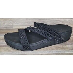 Skechers Arch Fit Retrograde Black Comfort Slide Sandals Women's Size 11 NEW