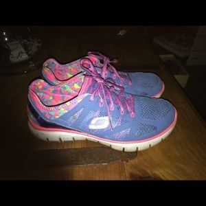 Skechers Athletic Shoes, relax fit memory foam, gel infused. Very comfortable. Just a bit small for me. Worn maybe 5 times.