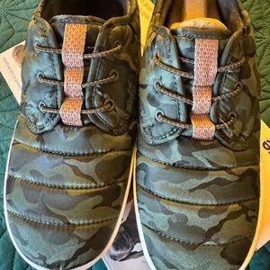 Comfortable Skechers BOBS with memory foam. Camouflage pattern. Lightweight and easy to wear. • Heel height- 1"