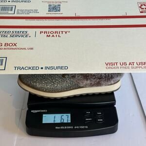 Skechers BOBS Faux Fur Memory Foam Slippers Women’s 6 Glitter Metallic Slip On