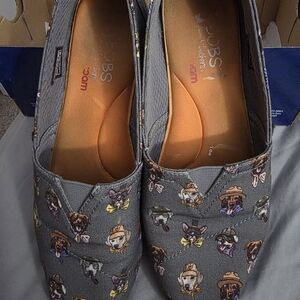 Skechers BOBS Gray Slip-On Shoes with Sherlock Holmes Dog Design