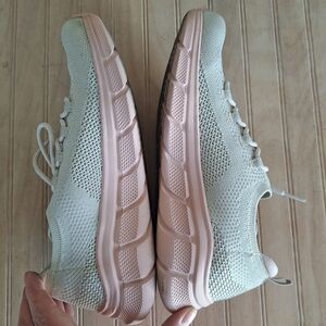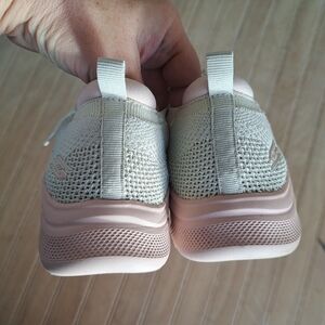Skechers BOBS Step And Go 117122/NAT Natural. Pink soles. Slip on, knit walking shoes. So cute!