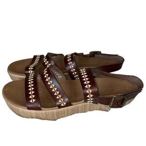Strappy slingback slide sandal design with wood-look finish 'flatform' sole