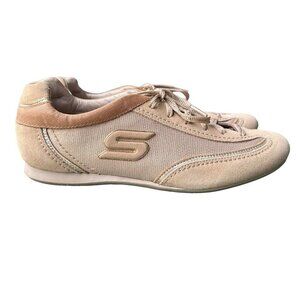 Skechers Bella Campana Fashion Sneakers Gold Leather Textile Lace-Up Size 10