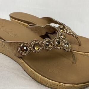 Skechers Beverlee Bizzy Babe Wedge Sandal Womens 10 Brown Rhinestone Luxe Foam
