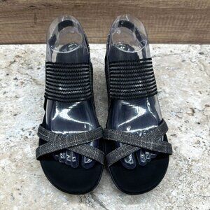 Skechers Beverlee High Tea Wedge Sandals Womens Comfortable Size 8 Gray Black