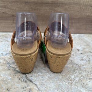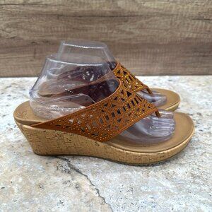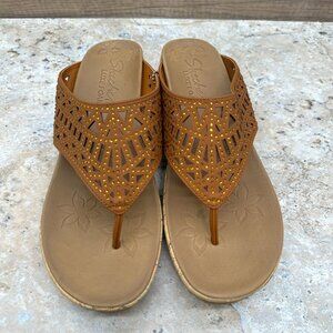 Skechers Beverlee Sandals Womens Size 10 Tan Thong Wedge Cork Luxe Foam