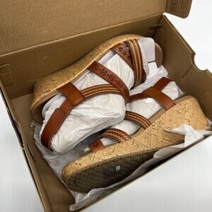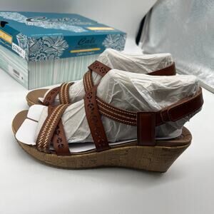 Skechers Beverlee Vegan Wedge Strappy Sandals Brown Size 10