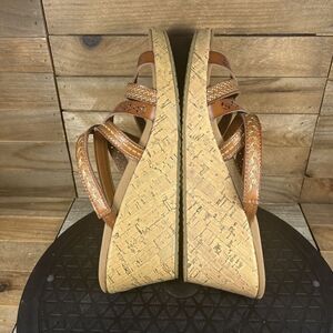 Skechers Beverlee-Tiger Posse Womens Size 9 Brown Strappy Cork Wedge Sandals