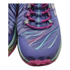 Skechers Big Girls 5 Skech-Air Purple Jumpin Dots Memory Foam Sneakers. Have some material damaged shown in pictures