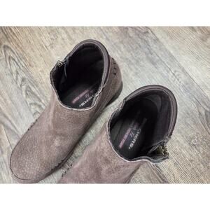 Skechers Bikers-Zippiest-Moc-Toe Outside Zip Bootie Ankle Boots Shoes Brown 7