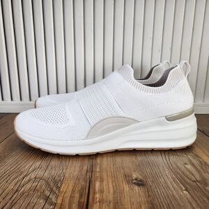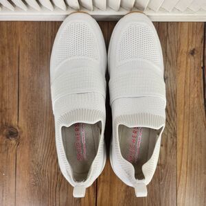 Skechers Billion Over The Top Women's 10 White Slip On Knit Walking Shoes 155627