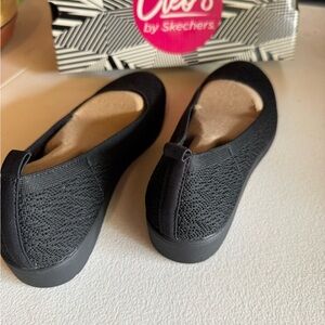 Skechers Cleo Flex shoes in sleek black. Vegan and machine washable. Stylish and super comfortable with the memory foam! Brand new in the box. Size 8