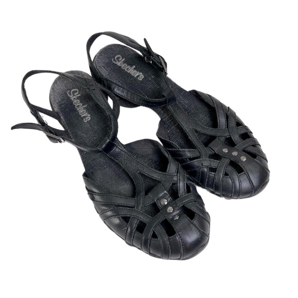 Skechers Black Genuine Leather Outdoor Flat Sandals Gorpcore 8.5