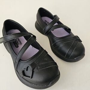 Skechers Black Girls Size 12.5 Casual School church Shoes with Heart Detail