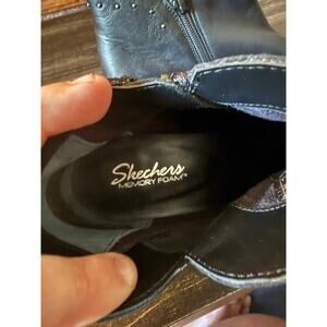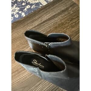 Skechers Black Leather Rae Studded Zip Up Casual Ankle Booties Sz. 8