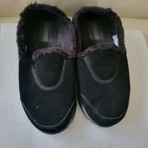 Comfortable black loafers with memory foam. Soft lining for added warmth.
