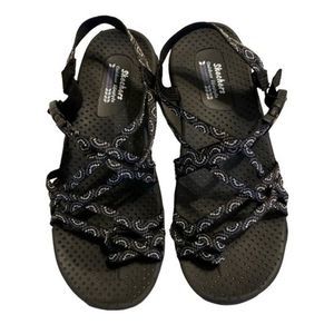 Step out in style with these Skechers black sandals. Perfect for any casual outing, these sandals offer comfort and elegance.