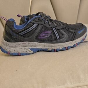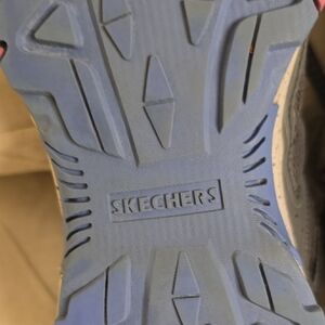 Stylish Skechers sneakers. Black with blue accents. Comfortable and durable design.I just washed them so are ready to wear, smelling fresh.
