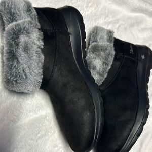 Skechers Black and Gray Winter Boots with Plush Fur Lining