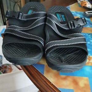 Comfortable black strappy sandals by Skechers. Perfect for casual outings. C-6