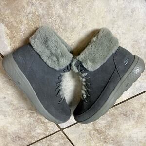 Skechers Boots 7.5 On The Go Winter Chill Gray Suede Leather Lace Up Ankle