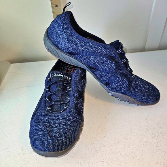 Skechers Breathe Easy Womens Slip On Memory Foam Sneakers ~ Navy Blue ~ Size 9.5. This slip-on features an engineered Skech-Knit upper with a bungee-laced front and a Skechers Air-Cooled Memory Foam® insole.